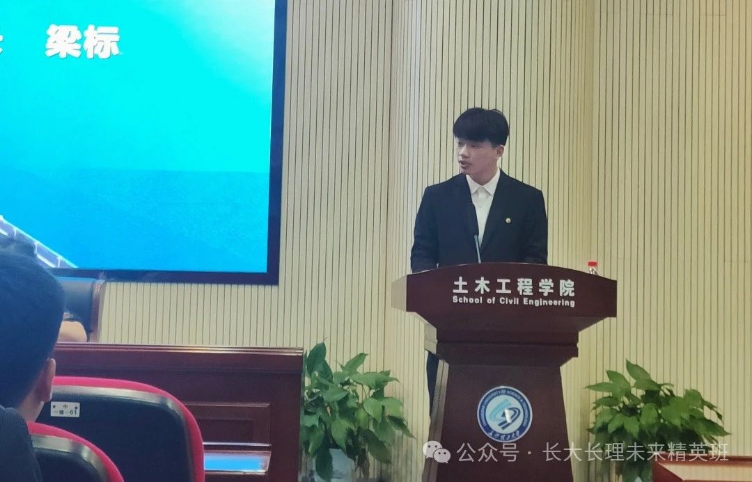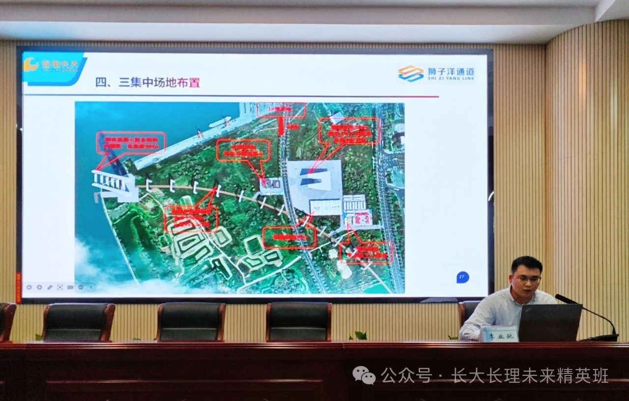 随后,李业驰向同学们讲解狮子洋通道的工程概况,从关键结构、关键技术、项目进展等方面,向我们立体的展现了该大桥的工程情况。接着,介绍安全生产以及质量工程开展情况。从安全教育培训、安全检查、安全标准化班组开展情况,质量工程等进行讲解,让我们了解安全施工及质量工程的重要性。最后并寄语,“愿我们‘心存希冀,追光而遇。目有繁星,沐光而行。’”
