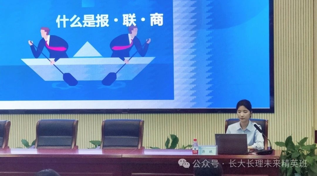 会议伊始,蒋琪从“报·联·商”的概念,重要性,报告,联络和商谈这五个方面,通过案例分析、诊断和建议,深入浅出地讲解了“报·联·商”的概念和实践方法对高效沟通进行阐述,强调高效沟通的重要性,旨在帮助同学们提高沟通效率,加强团队合作。
