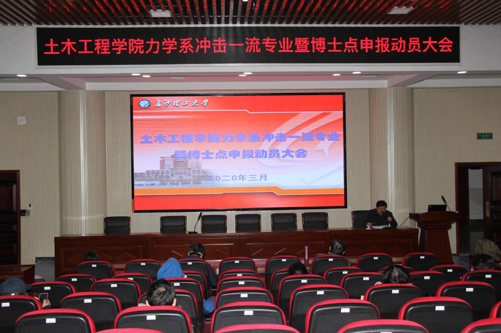 积极响应学校党委号召,确保防疫发展两不误,3月3日下午,土木工程学院在工二B302召开力学专业冲击一流专业建设和博士点申报工作动员大会。院长李传习,副院长王桂尧、肖勇刚、蒋友宝,力学系全体老师以及教务办、科研办、学工办相关人员佩戴口罩参加会议。会议由院党委副书记丁丹主持。