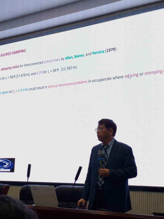 2019年12月12日下午4点,受土木工程学院邀请,美国宾夕法尼亚州立大学陈幼佳教授莅临香港六宝合典资料大全云塘校区工科二号楼B302学术报告中心,为全院师生作了题为《Research progression and practical applications of floor vibration》(楼板振动的研究进展与实际应用)的学术报告。报告会由土木工程学院副院长蒋友宝教授主持,院长李传习教授、副院长陈伏彬以及刘哲锋、李红利、陈伟、陈逵、卜乐奇、吴研等老师与研究生共120余人参与了本次学术交流会。