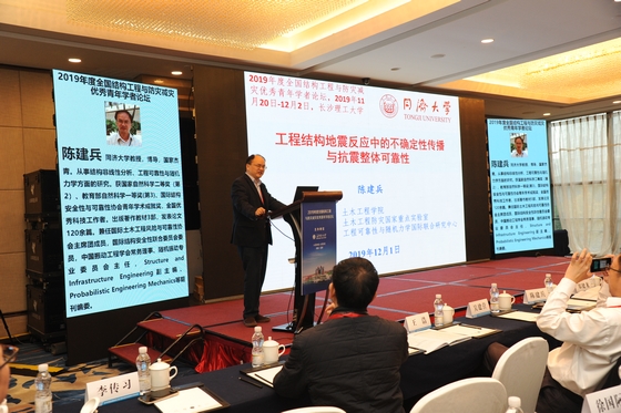 其中,同济大学陈建兵教授作了题目为《工程结构地震反应中的不确定性传播与抗震整体可靠性》的学术报告。基于物理驱动的概率密度演化过程,陈教授探讨了如何将工程设计中的不确定性进行量化。
