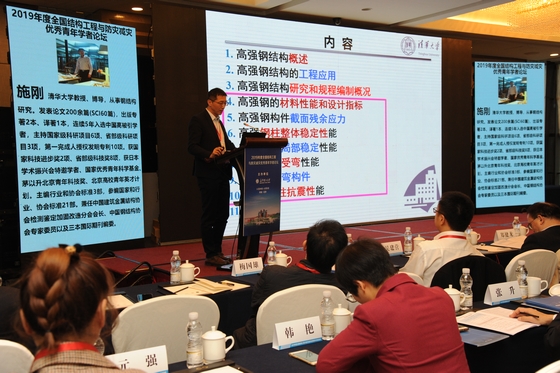 清华大学施刚教授结合他近年来在高强钢结构方面的研究,作了《高强钢结构研究进展及标准编制》的报告,探讨了高强钢结构的设计参数及其使用性能,弥补了国家现有规范的不足。