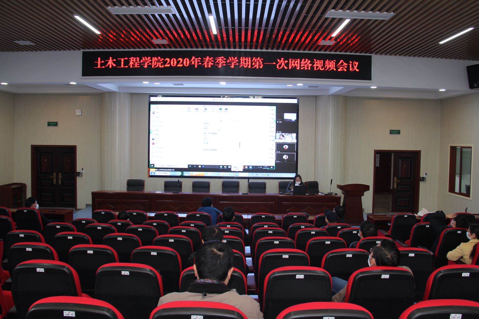 2月14日下午三点,土木学院2020年春季学期第一次网络视频工作会议在工二B302召开。学院全体班子成员、各系(室)主任、支部书记佩戴口罩到场参加,学院百余名教职工则通过网络平台同步参与了本次会议。本次网络视频会议由学院院长李传习主持。
