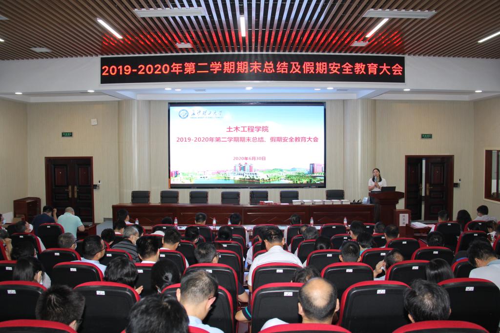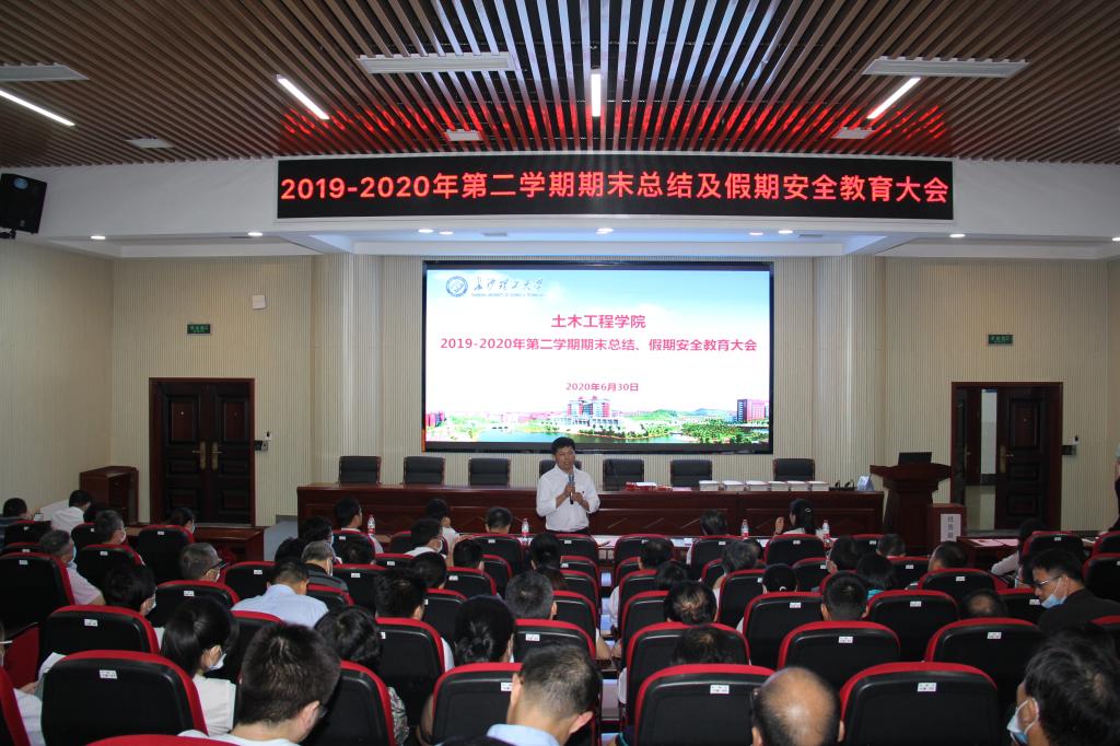 6月30日,土木工程学院在工科二号楼学术报告厅召开了2019-2020学年第二学期期末总结暨假期安全教育大会。全体院领导及教职工参加会议,院党委副书记(主持工作)丁丹主持大会。