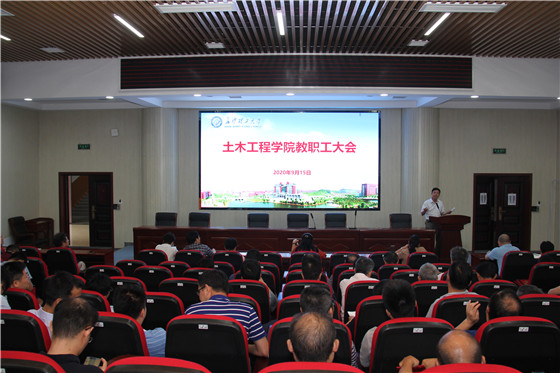 9月15日下午,土木工程学院在工科二号楼B302会议室召开新学期第一次全体教职工大会,传达学校有关会议精神,布置新学期工作,会议由陈伏彬副院长主持。