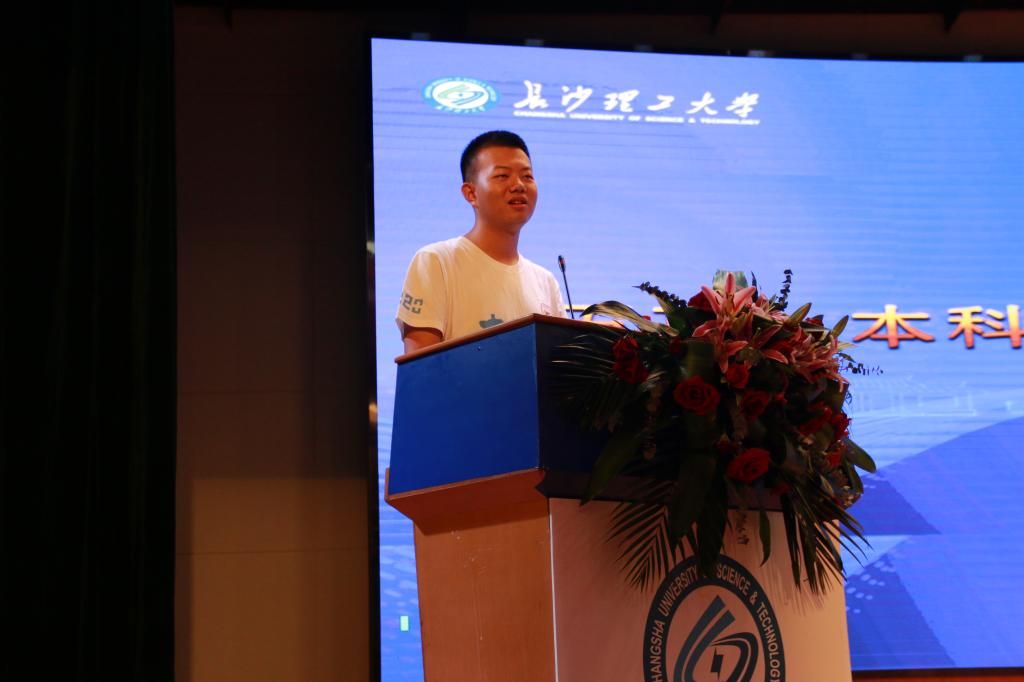老生代表桥梁1702班邓文杰建议各位新生迅速转换心态,调整角色,做好大学规划,并希望大家多参加其他课外组织,以培养自己实践能力。