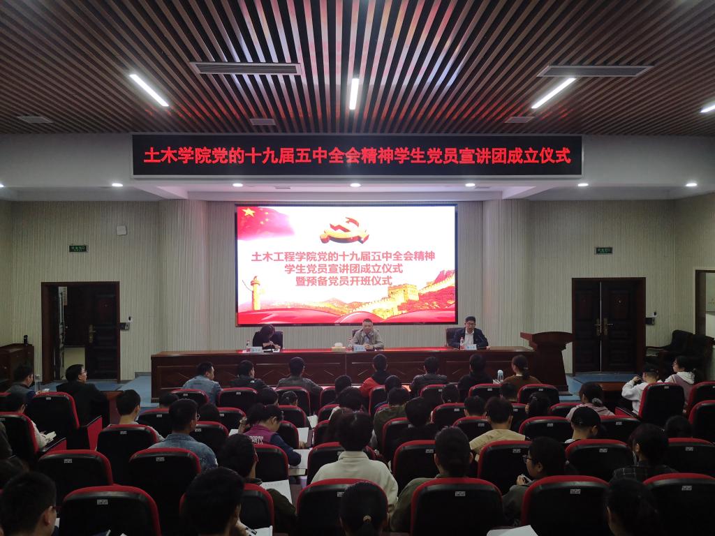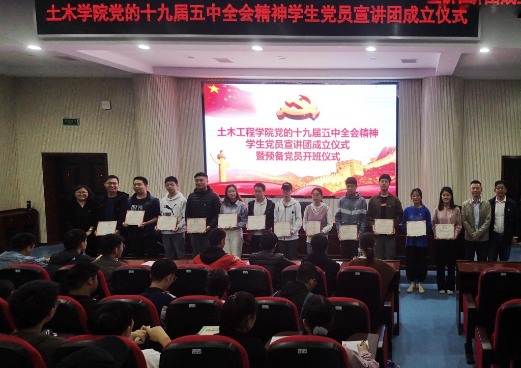为认真学习宣传贯彻党的十九届五中全会精神,充分发挥学生党员的先锋模范作用,11月11日,土木工程学院在工科二号楼B302学术报告厅举行党的十九届五中全会精神学生党员宣讲团成立仪式。校党委组织部副部长龚文斌,院党委副书记(代理)黄阿明以及学生党员宣讲团全体成员参加会议。院学生党总支副书记李小军主持成立仪式。