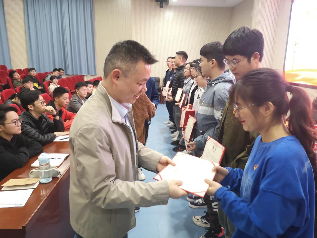 最后,龚文斌为宣讲团成员代表颁发聘书并讲话。他指出,学习宣传贯彻好党的十九届五中全会精神是当前和今后一个时期的重要政治任务。土木学院在全校率先成立学生党员宣讲团,集中开展宣讲活动,对促进全会精神广泛宣传普及、凝聚学生党员、共青团员的思想共识具有十分重要的意义。他强调,要深入学习领会习近平总书记关于“四个全面”新内涵、新发展阶段、新发展理念、新发展格局的重要讲话精神,全面准确宣讲全会精神;要认真学习原文,做好集体备课,把握方向导向;要注重宣讲实效,全力以赴做好宣讲“三进”(进课堂、进宿舍、进实验室)工作,力争让宣讲“有朝气”“接地气”,推动全会精神在全体学生中入脑入耳入心。
