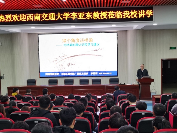 2020年11月23日上午,受土木工程学院邀请,西南交通大学土木工程学院桥梁工程系李亚东教授莅临我校工科二号楼B302学术报告厅,作了题为“换个角度谈桥梁——对桥梁的再认识和学习建议”的学术报告。报告会由学院院长李传习教授主持,部分教师、研究生及本科生参加了报告会。