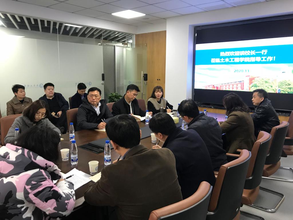 11月24日下午,副校长谈传生,学生工作部部长艾楚君、招生就业处副处长李娜、校团委副书记陈璐莎一行莅临土木工程学院调研指导学生工作。院党委书记丁丹、院长李传习,党委副书记(代理)黄阿明、副院长王桂尧、彭晖、蒋友宝、陈伏彬及全体学生辅导员参加调研座谈会。