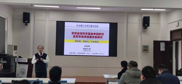2020年12月16日下午,应土木工程学院邀请,国家杰出青年基金获得者、湖南大学文桂林教授莅临我校工科二号楼A304学术报告厅,作了题为“国家自然科学基金申报经验及青年教师发展关系探讨”的学术报告。报告会由学院副院长蒋友宝教授主持,力学系主任陈得良教授、盛国刚教授以及多位青年博士、博士研究生共40余人参加了报告会。