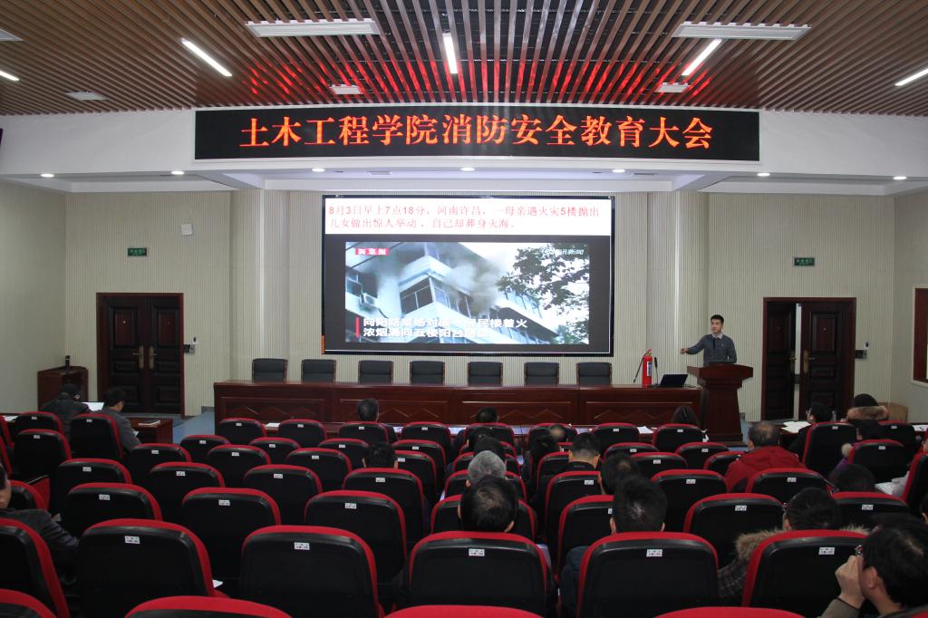 为了进一步提高学院教职工的消防安全意识,夯实校园火灾防控工作基础,12月15日下午,土木工程学院在工二B-302学术报告厅组织全体教职工参加消防安全教育大会。大会邀请长沙市普消消防安全宣传服务中心刘铁华教官作专题讲座,院党委书记丁丹主持会议。