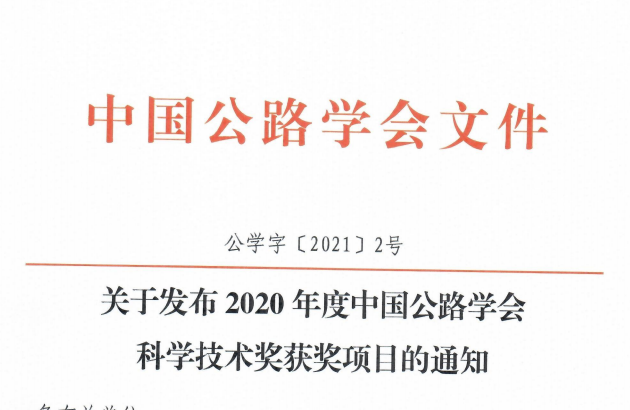 近日,中国公路学会正式公布了《关于发布“2020年度中国公路学会科学技术奖”获奖项目的通知》。我院两项科研成果在本次中国公路学会科学技术奖评比中双双斩获一等奖!