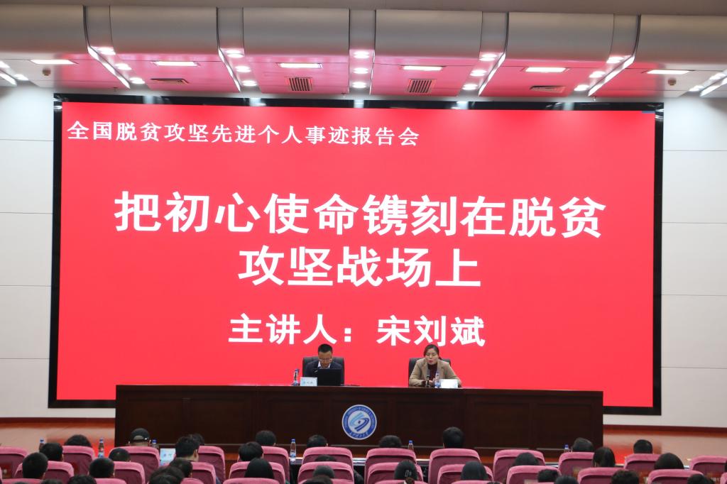 启动仪式上,全国脱贫攻坚先进个人获得者、学校驻村扶贫工作队队长宋刘斌受邀作题为《把初心使命镌刻在脱贫攻坚战场上》的专题报告。
