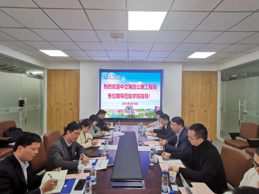 丁丹代表学院对中交四公局各位领导一行表示热烈欢迎,就学院的办学历史和发展进程、以及近年来在党团建设、教学科研、人才培养、招生就业等方面取得的经验和成果进行了介绍。