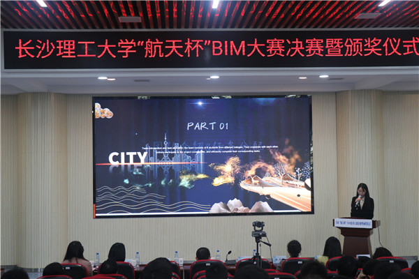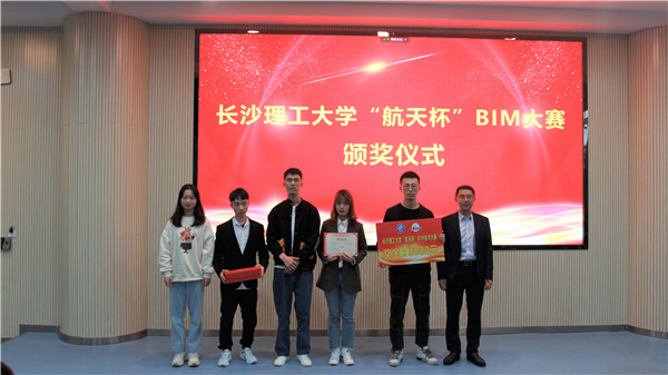由校教务处、校团委主办,土木学院承办的首届“航天杯”BIM技术大赛决赛暨颁奖仪式,于4月27日下午在工二B302举行。湖南航天建筑工程有限公司党委副书记周环球、总经理助理张月月、工会主席徐晖、人资部部长张巧丽、技术部长王新槐、BIM中心主任刘子翔、技术部副部长龚伶妃,校教务处副处长贺跃光、校团委副书记陈璐莎,土木学院党委书记丁丹、副书记黄阿明、副院长蒋友宝、建工系教师代表出席了本次活动。