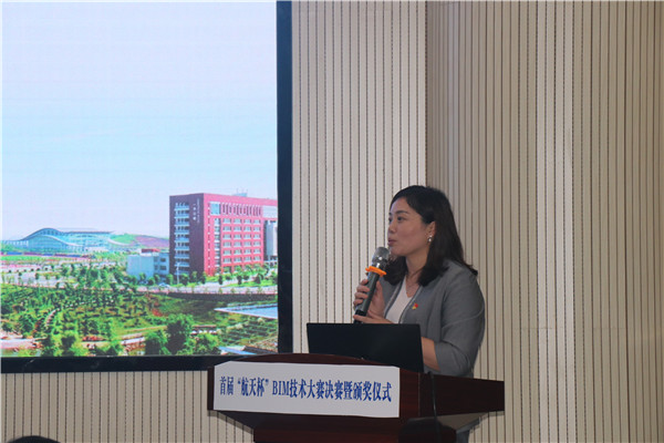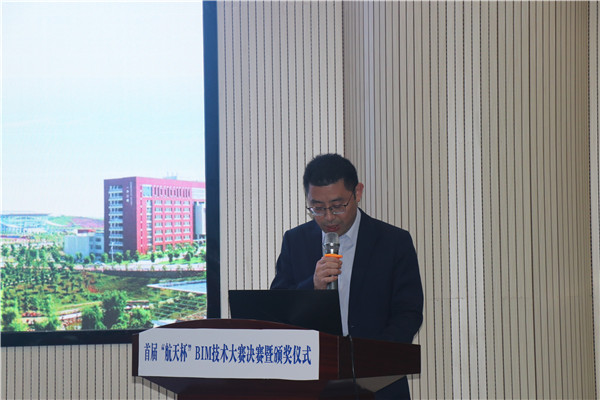 周环球代表航建公司讲话,希望所有的建筑业专业类的同学能通过本次大赛的这个平台和机会,去接触、应用,甚至挑战最新最前沿的技术,在比赛中获得成长,掌握一门新技术,努力成为推动BIM技术应用,实现建筑的工业化、信息化和智慧化的生力军,助推建筑业的发展。