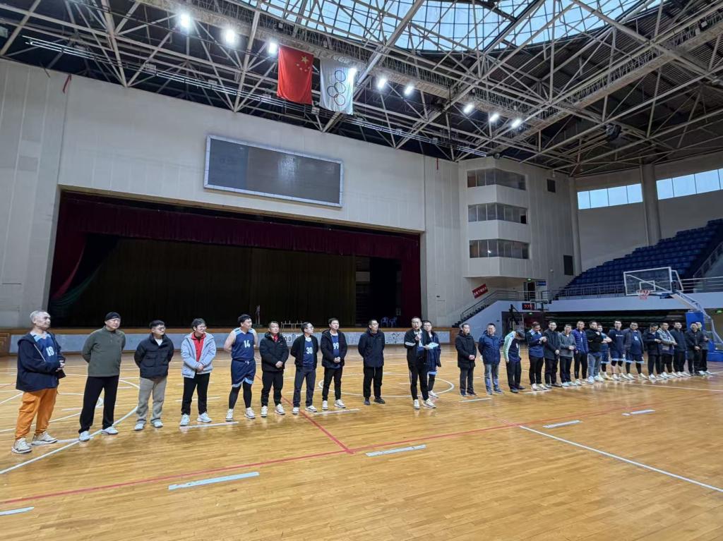 12 月 23 日下午,金盆岭校区体育馆篮球场内激情满溢,物电学院师生篮球友谊赛暨交流活动在此拉开帷幕,物电学院党委书记张国强率学院教职工篮球队全体成员以及近三十位教授专家出席,25级全体学生参与活动。
