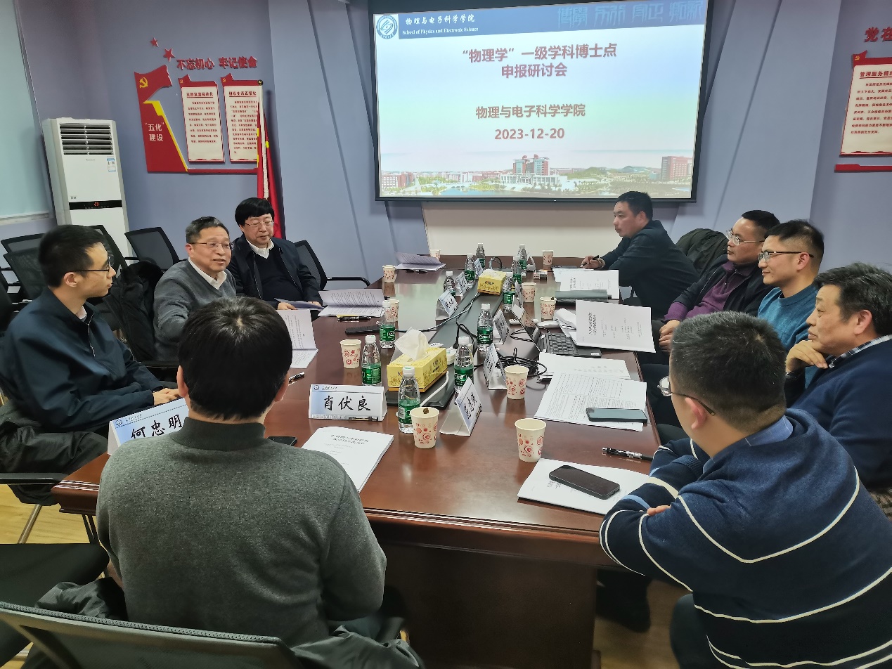 为积极推进学科与学位点建设工作,12月20日下午,我院在C511会议室召开学科与学位点建设研讨会。我校副校长胡永乐教授、湖南大学刘渊教授、湖南大学陈克求教授、原研究生院院长管德清教授、物电学院党委书记张国强、副院长(主持工作)张卫兵、班子成员、学科骨干和教师代表参会。会议由张国强书记主持。