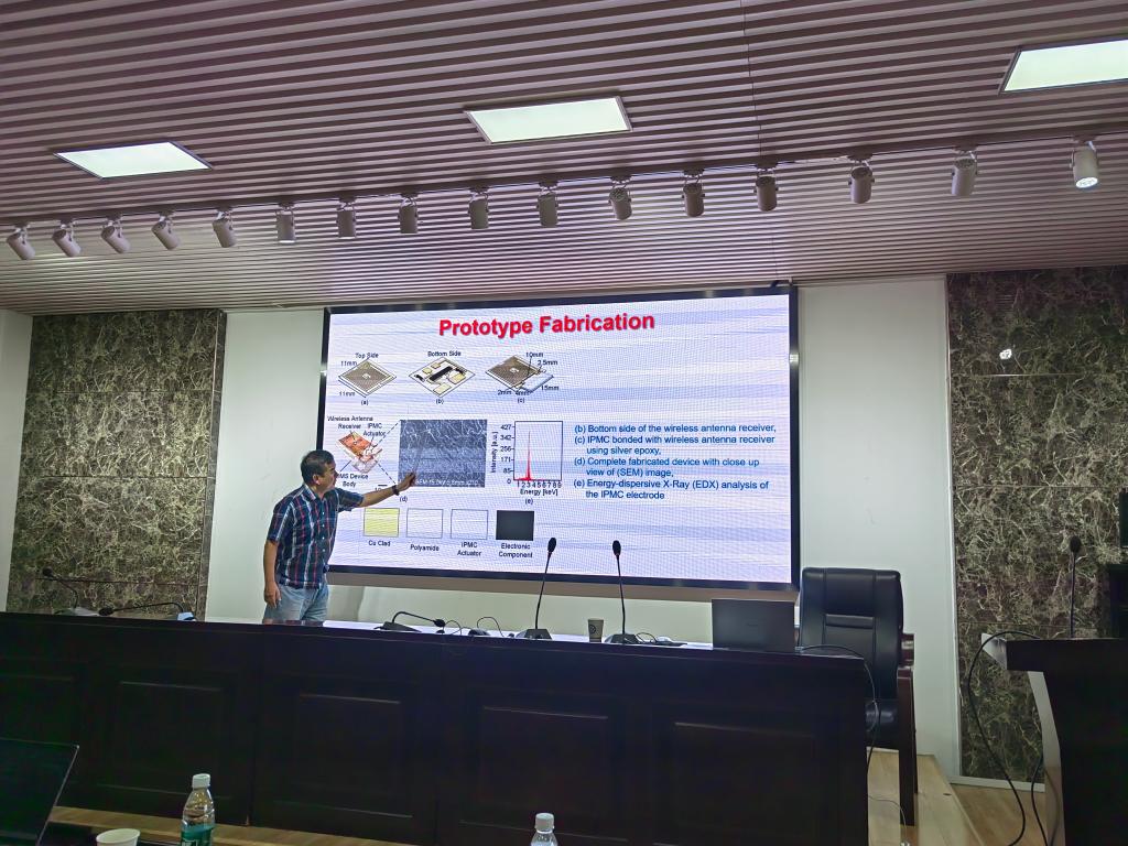 2024年5月29日下午,马来西亚拉曼大学Eng-Hock LIM教授应邀来我校交流指导,在理科楼B413会议室作了题为《离子聚合物-金属复合材料(IPMC)在天线设计中的应用》的学术报告。我院百多名师生积极参加了此次学术报告会,会议由刘斯教授主持。