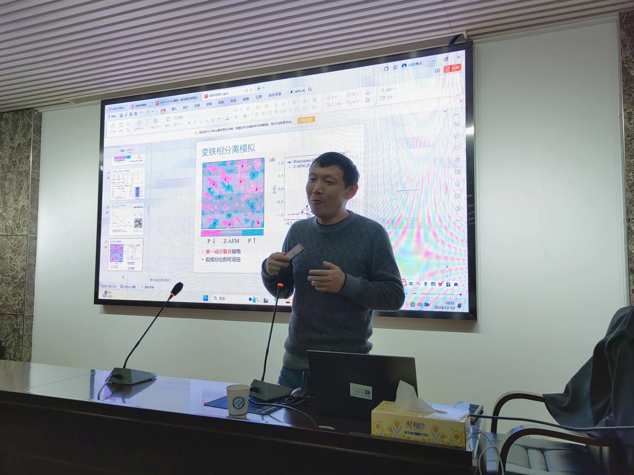 2024年12月10日上午,我院邀请了东南大学董帅教授来我院做了以《磁电耦合新概念:变铁性与磁电拓扑》为题的学术报告,会议在理科楼B413开展,由张卫兵教授主持,百余名师生参加。
