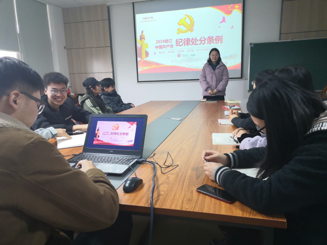 本次集中学习由党支部书记姚巍老师主讲,明确学习内容为新修订的《中国共产党纪律处分条例》。在重点讲到《条例》六大违纪内容及相应处分时,姚巍老师尽力贴近研究生党员们的实际情况,强调:“作为研究生党员,在明确当前自己如何遵守党纪法规的同时,更应该筑牢不可触碰的底线,不管将来从事什么工作,都要一直牢记在心中”。学习的最后,姚巍老师给党员们讲述了六起违反中央八项规定精神的典型案例,让党员同学们对中央八项规定又有了进一步的认识。学习结束后,研究生党员们积极交流发言。此次学习,党员们接受了一次深刻的党的政治理论和基础知识教育,从而也更加坚定了自己的革命理想信念和永葆共产党员先进性的崇高责任感。