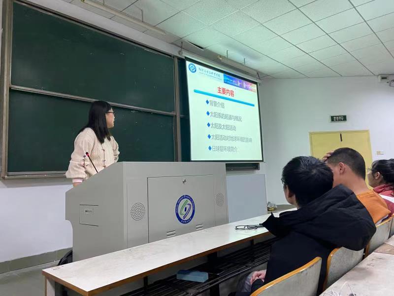 作为离地球最近的一颗恒星,太阳是地球的光和热的来源,是维持地球上一切生命的基础,是人类进化和发展的主要因素,了解太阳的结构及相应的日地关系具有重要的科学意义和价值。李博士从太阳系的起源与概况、太阳及太阳活动、太阳活动对地球环境的影响和日球层环境简介四个方面展开,结合太阳系起源示意图,细致入微地科普了太阳和太阳系的基本信息,并着重讲述了太阳的多波段成像观测和太阳活动现象。最后,在同学们的掌声中,此次讲座画上了圆满的句号。