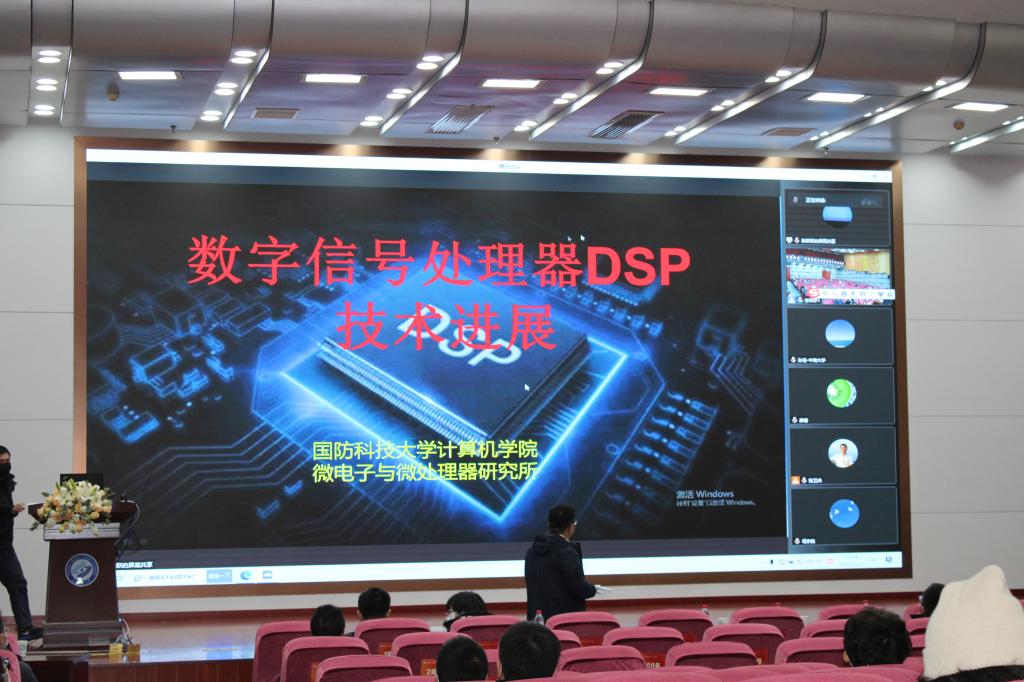 国防科学技术大学秦石乔教授、微电子所所长郭阳教授及陈跃跃教授,湖南大学半导体学院(集成电路学院)院长廖蕾教授,中南大学物理与电子学院院长孙克辉教授及孙佳教授,湖南师范大学物理与电子科学学院副院长欧阳钢教授及金湘亮教授、陈明星教授,湘潭大学自动化与电子信息学院院长姚志强教授、湘潭大学物理与光电工程学院副院长毛宇亮教授,吉首大学物理与机电工程学院院长黄勇刚教授及邓科教授、湖南文理学院数理学院院长杨江河教授以及湖南科技大学物理与电子科学学院副院长许英教授线上参加了论坛开幕式。我校研究生院副院长田上、物理与电子科学学院领导、老师、研究生和本科生共计200余人参加开幕式。