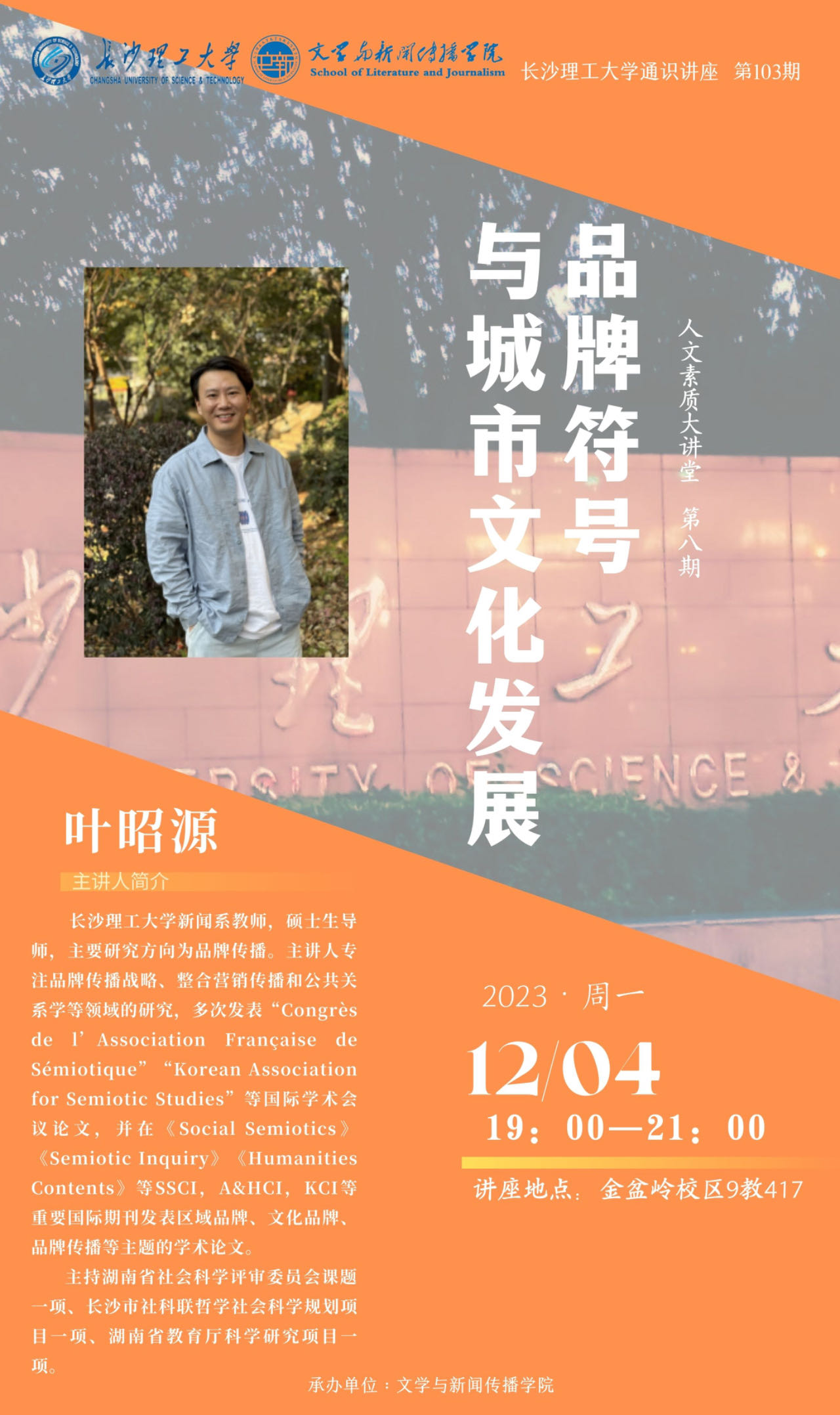 通识讲座暨人文素质大讲堂预告: 叶昭源--品牌符号与城市文化发展