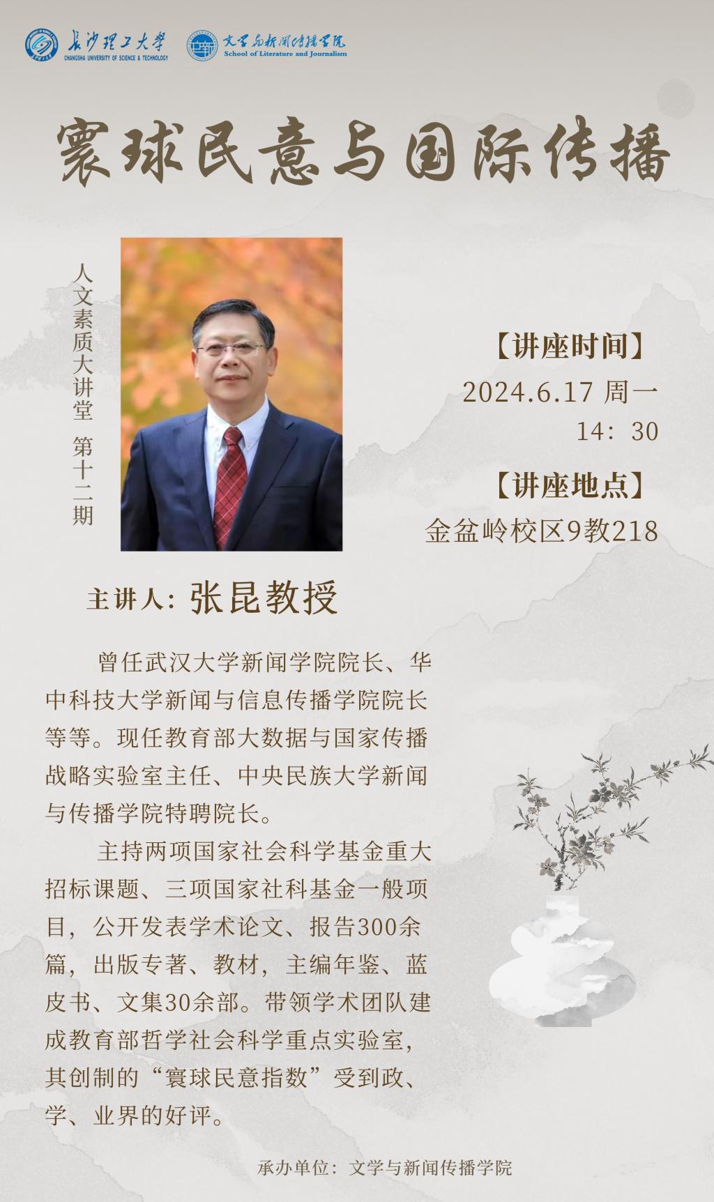 人文素质大讲堂系列讲座预告:张昆教授——寰球民意与国际传播