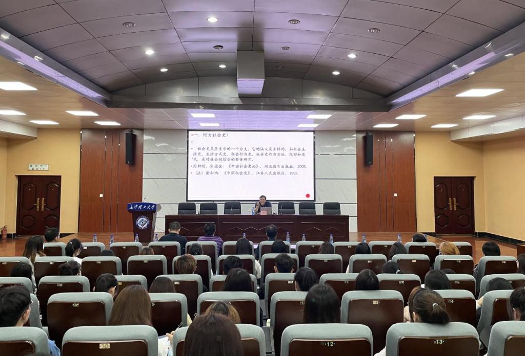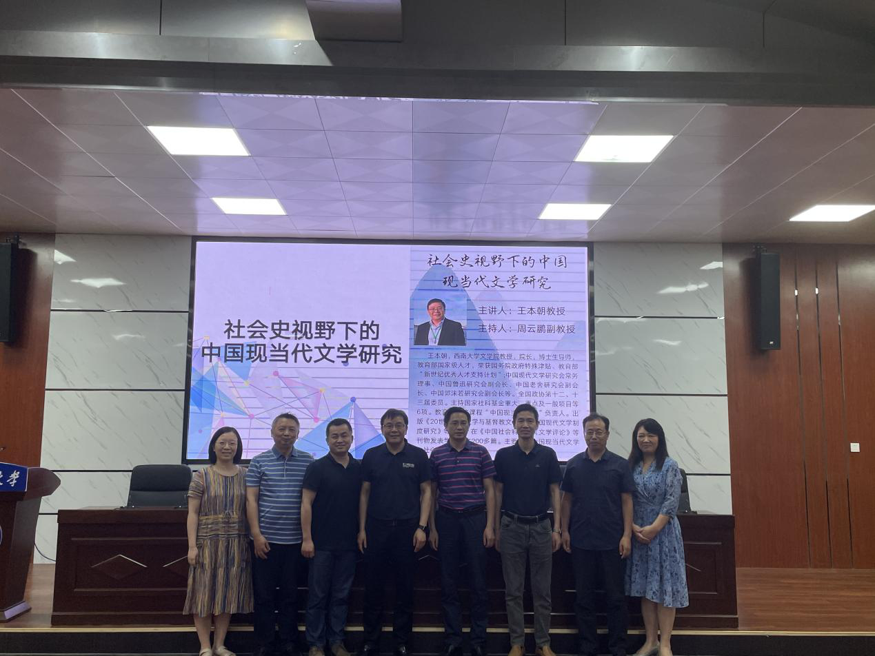 6月5日晚,文学与新闻传播学院邀请西南大学文学院王本朝教授开讲香港六宝合典资料大全第十七届研究生博力学术论坛分论坛——社会史视野下的中国现当代文学研究。学院党总支书记伍接朝、副院长魏桃初、中文系主任郑劭荣及150余名教师、学生代表参加,讲座由副院长周云鹏主持。