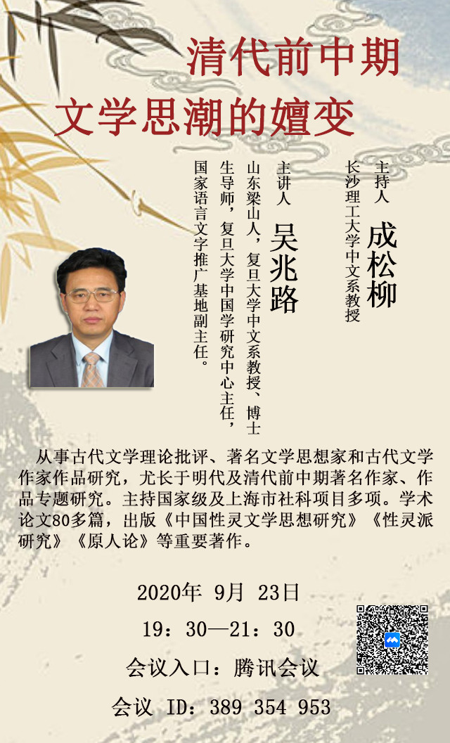 报告人简介: 从事古代文学理论批评、著名文学思想家和古代文学作品研究,尤长于明代及清代前中期著名作家、作品专题研究。主持国家级及上海市社科项目多项。学术论文80多篇,出版《中国性灵文学思想研究》《性灵派研究》《原人论》等重要著作。