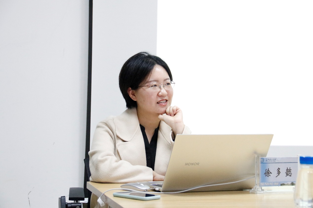 随后,各位评委老师对徐博士的学术分享进行点评讨论。岳利民老师肯定了徐博士的严谨态度,指出材料的真实性和可靠性是做学术研究的生命。冯利华老师认为徐博士行文流畅,逻辑清晰,观点有破有立,为大家作了一个很好的学术示范。唐昱老师就文献的查找方式与徐博士作了相关探讨。
