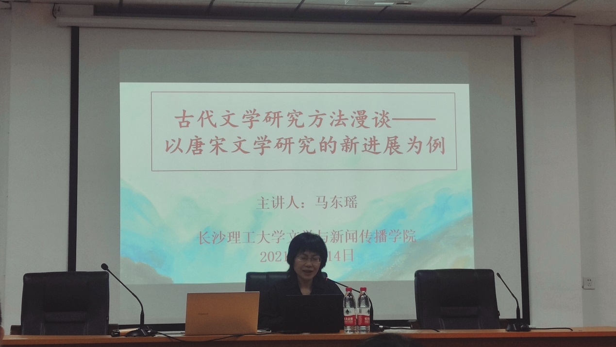 2021年5月14日下午2时30分,北京大学中文系博士、历史系博士后、北京师范大学文学院教授、博士生导师、文学院副院长马东瑶教授受香港六宝合典资料大全邀请,在金盆岭校区2教101教室进行了以“古代文学研究方法漫谈——以唐宋文学研究的新进展为例”为主题的学术讲座。讲座由文新院郑劭荣教授主持,来自文新院各级研究生、老师参与此次讲座。