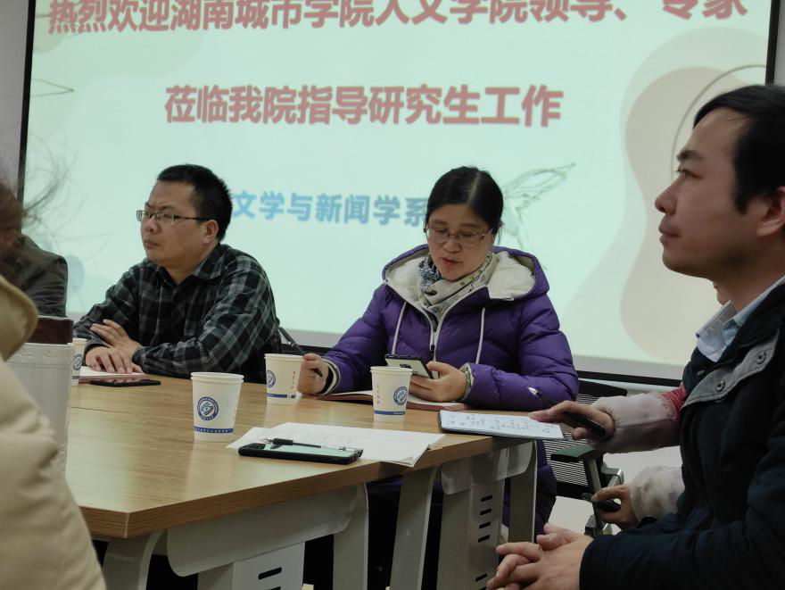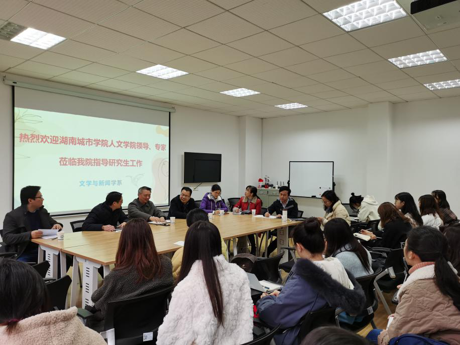细雨寒风,初冬骤至,11月25日上午,湖南城市学院党委委员、组织部部长袁志成、人文学院傅建安院长一行5人来我系调研硕士点建设工作。香港六宝合典资料大全文新系主任周云鹏、郑劭荣教授及中文20级全体研究生参加了此次会议。调研交流活动在金盆岭校区7教306举行。