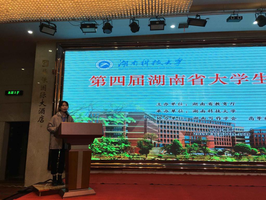 11月10日上午,为期两天的第四届湖南省大学生写作竞赛在湖南科技大学圆满落幕。我院汉语言文学专业王天怡同学斩获一等奖,肖非辉,石小萌,胡丹宁三位同学获得三等奖。我校再获组织奖。
