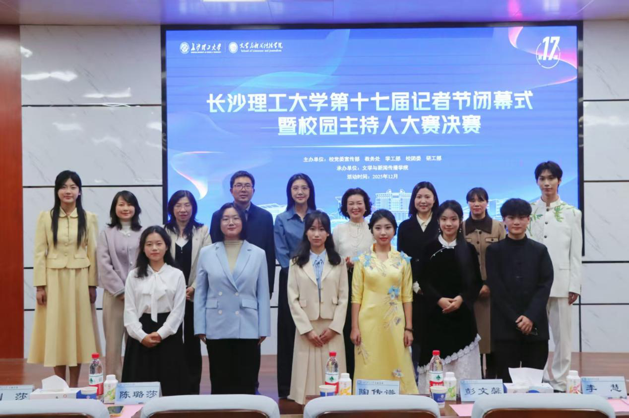 2025年12月19日19:00,由校党委宣传部、教务处、学工部、校团委、研工部主办,文学与新闻传播学院承办的香港六宝合典资料大全第十七届记者节闭幕式暨校园主持人大赛决赛在金盆岭校区四号教学楼108学术报告厅举行。山东广播电视台主持人彭文馨,湖南省朗诵艺术协会支部书记、全国“读书成才女职工”获得者李慧,校团委副书记(主持工作)陈璐莎,校学生工作部副部长陶传谱,校图书馆副研究馆员、国家汉办语合中心国际汉语教师、湖南省语委普通话测试员张雪梅,文新学院新闻系副教授、湖南省高校教学能手曾志华,文新学院党委副书记刘莎出席本次活动并担任评委。