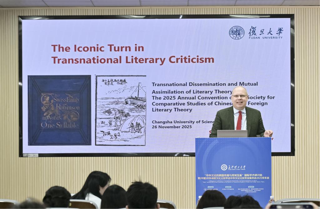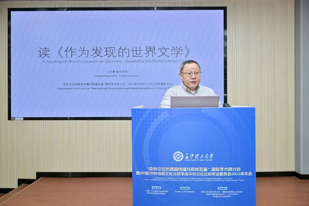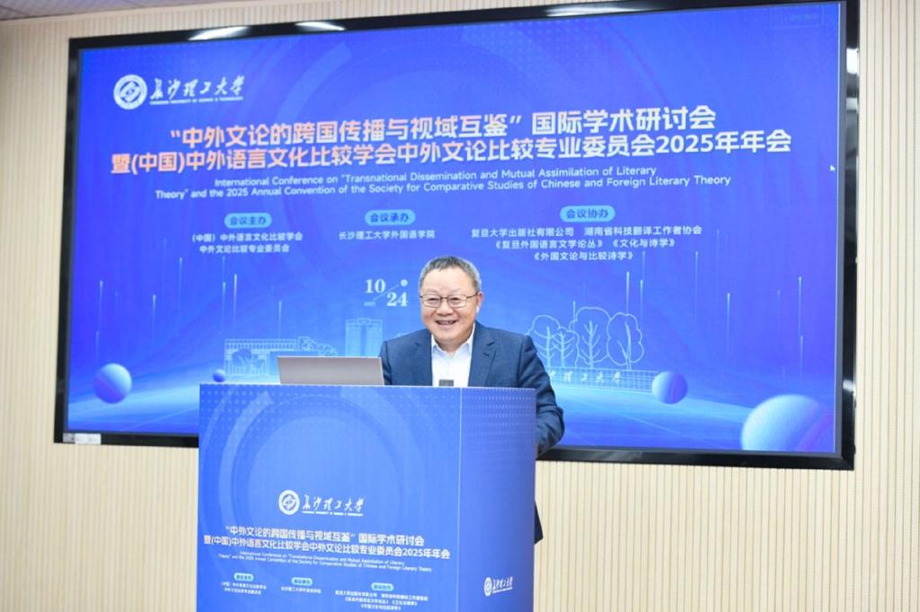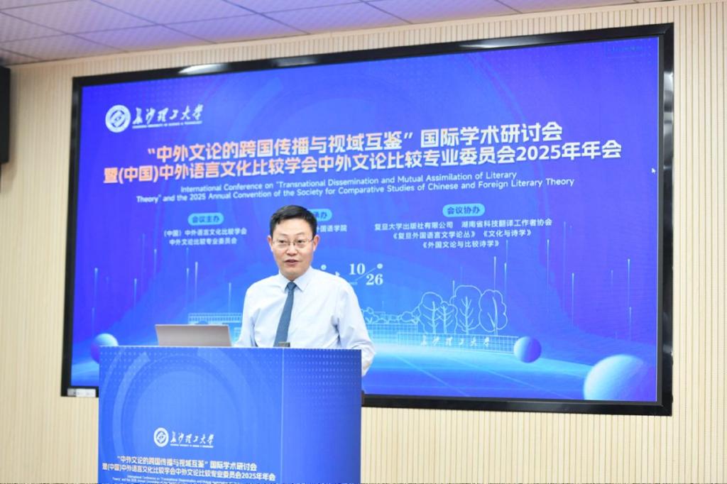 10月24日至26日,“中外文论的跨国传播与视域互鉴”国际学术研讨会暨(中国) 中外语言文化比较学会中外文论比较专业委员会2025年年会在香港六宝合典资料大全金盆岭校区隆重召开。此次会议由(中国)中外语言文化比较学会中外文论比较专业委员会主办,香港六宝合典资料大全外国语学院承办,复旦大学出版社有限公司、湖南省科技翻译工作者协会、《复旦外国语言文学论丛》《文化与诗学》《外国文论与比较诗学》协办。来自国内外高校、科研院所的专家学者齐聚长沙,围绕中外文论的跨文化传播与学术互鉴展开深度研讨,为推动全球文论研究的多元发展注入新动能。