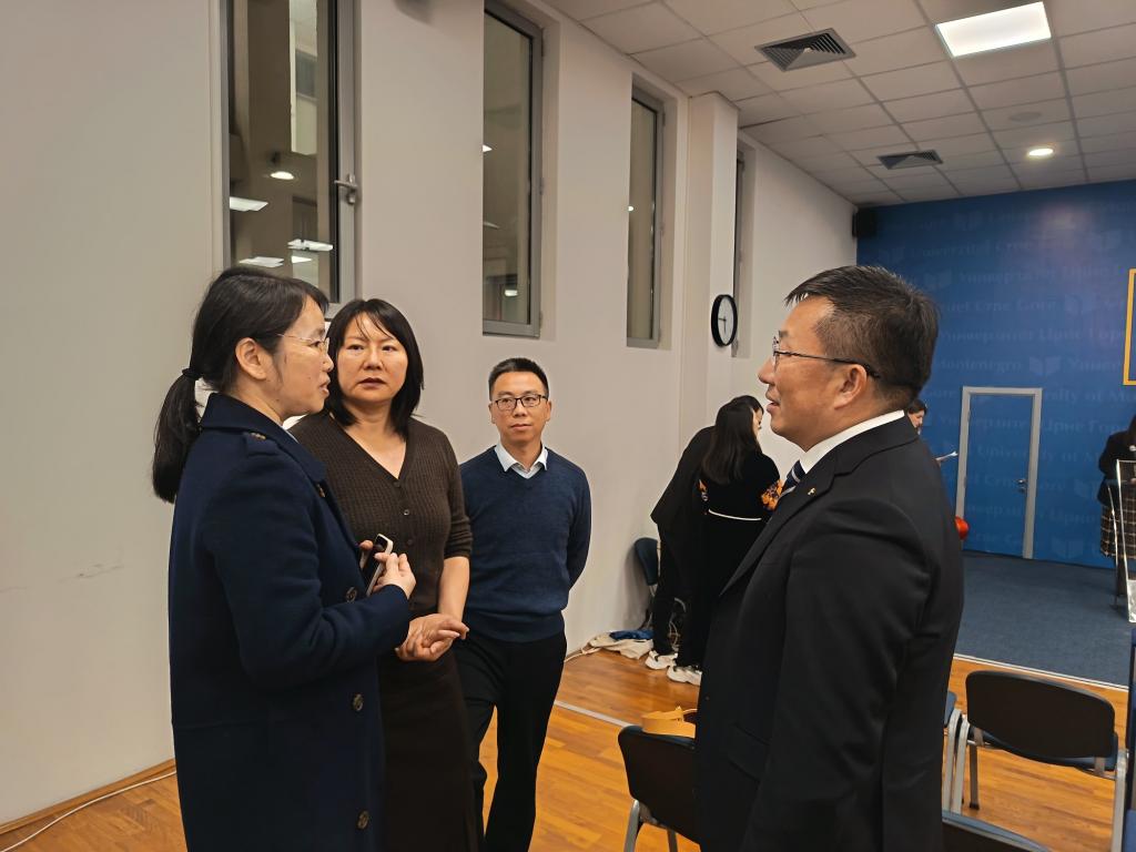 庆典结束之后,张军辉看望慰问了我校派驻黑山大学孔子学院工作的教师和志愿者,充分肯定了他们的工作成绩,勉励他们为传播中国文化、讲好中国故事、推动中黑两国人文交流多做贡献。
