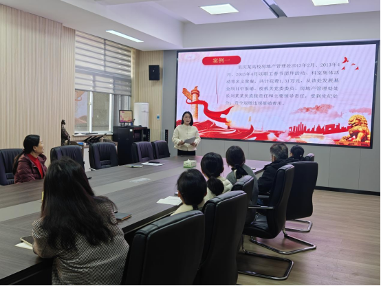 为深入贯彻学校关于警示教育工作的部署,持续推进“清廉长理”建设,11月27日下午,外国语学院行政党支部在三号教学楼214室组织开展“清风育德守初心,廉洁笃行担使命”主题党日暨师德师风、干部作风专题警示教育活动。学院党委副书记周芳担任主讲,支部全体党员参加。