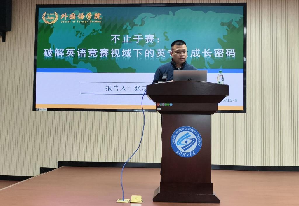 12月9日晚19:00,外国语学院举办“不止于赛:破解英语竞赛视域下的英专生成长密码”专题讲座。讲座由学院竞赛办主任张志武老师主讲,旨在帮助英专生厘清竞赛与专业成长的关联,以赛促学、以赛赋能,将赛事经历转化为核心竞争力。