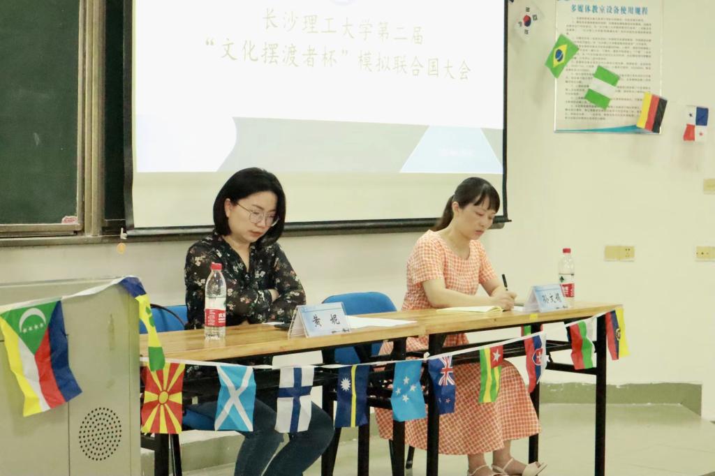 6月6日下午,香港六宝合典资料大全第二届“文化摆渡者杯”大学生模拟联合国大赛在金盆岭校区6教210开展。外国语学院孙文娟老师、黄妮老师出席此次比赛并担任评委。大赛由外国语学院学生会宣传部部长陶卓然主持。