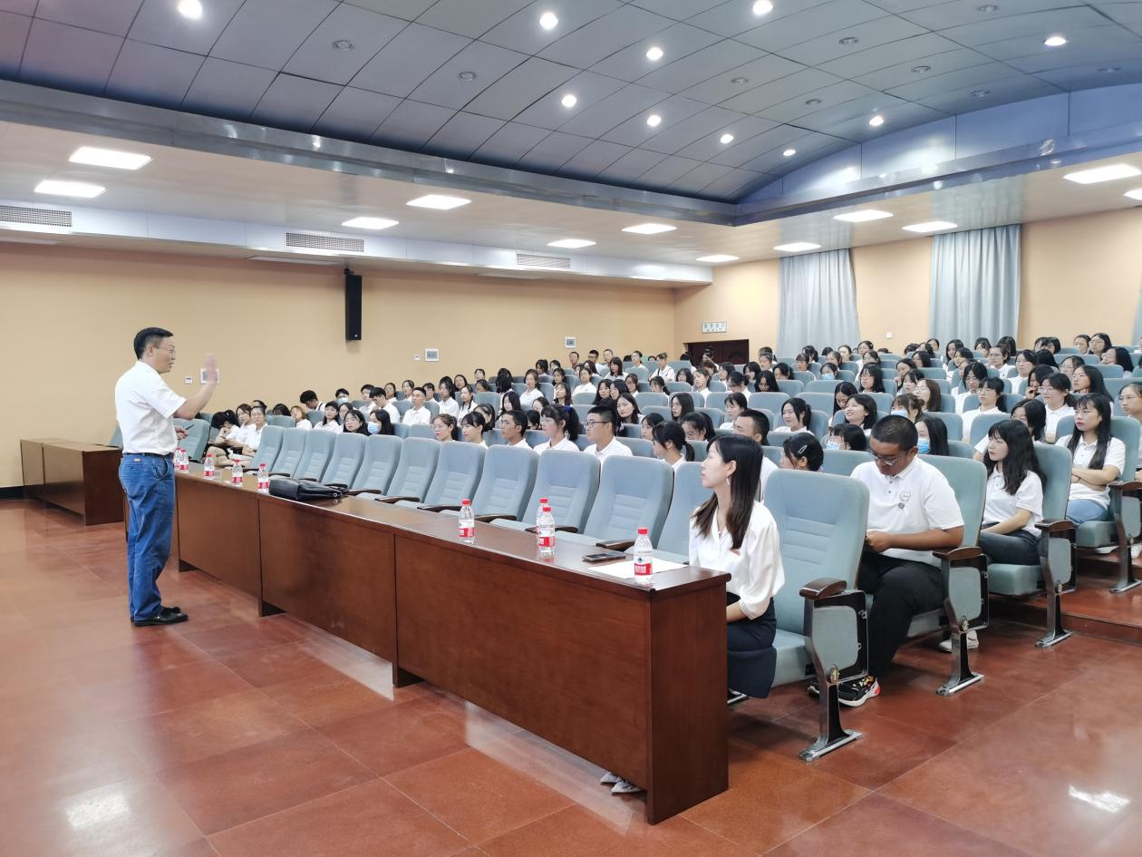 院长段胜峰为全体新生讲授题为“练就过硬本领,勇担强国使命”的新生第一课。他从“克服难关,遇见最美的你们”、“乘风破浪、成就最好的我们”、“砥砺奋进,筑梦最爱的长理”三个方面讲授,告知新生要坚定不移跟党走、树立“四个意识”,坚定“四个自信”,做到“两个维护”。段胜峰强调,作为外语学子,应秉持以“国际视野、家国情怀和志愿精神”为核心的文化摆渡精神,不仅要潜心学习,更要学会做人、服务社会。他寄语新生要以“利他”“无我”树立远大理想,凭“力行”“实干”激扬奋斗人生,用“磨炼”“锻造”增长卓越才华。