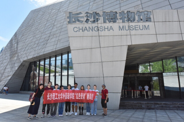 △红色使者翻译团在长沙博物馆进行调研实践后合影