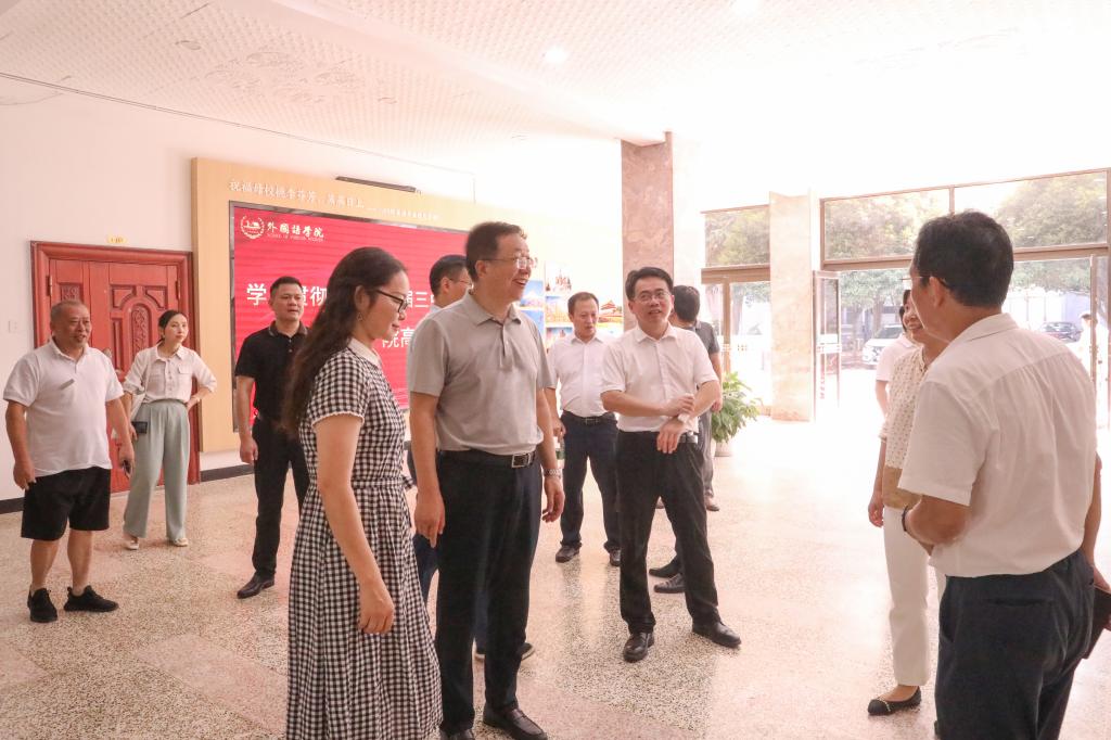 92日上午,校党委书记付宏渊、副校长钱国平、张军辉,在党政办、保卫处、后勤中心等相关部门负责人的陪同下,莅临外国语学院检查、指导新学期开学准备工作。