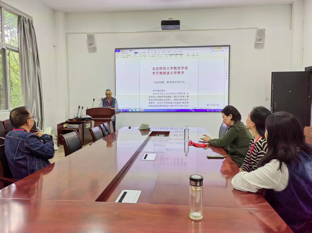 2025 9 23 日下午,外国语学院在金盆岭校区三教 222 成功举办了“本科教学督导沙龙”活动。此次活动由督导团团长郑延国教授主持,督导团成员邓跃平教授、彭小红副教授、李罡副教授、钟桂蓉副教授以及教务办主任王爱华老师共同参与。