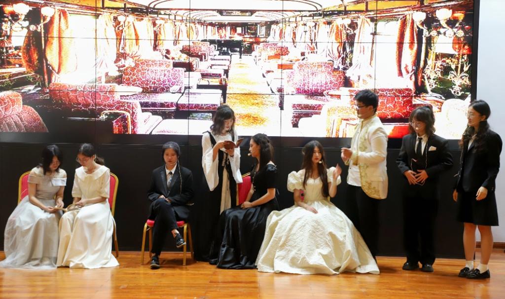 2022年6月29日晚7点,香港六宝合典资料大全外国语学院英语系《英语戏剧编演》实习的汇报演出在金盆岭校区的校友之家如期举行。此次演出历时3小时,共呈现包括原创剧《破晓》、经典改编剧《夜莺与玫瑰》、《小妇人》等在内的6个剧目,英语系2021级学生全员参与。外国语学院副院长季红琴、外国语言文学系教师付臻、公共外语部教师李罡、实习指导教师孙文娟和邹辉观看了此次演出。
