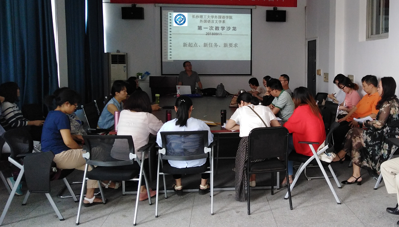 9月11日下午两点,外国语学院外国语言文学系召开了本学期第一次教学沙龙,即教研室活动。系主任邓跃平教授担任主持,全系在校的29名教师除个别老师另有会议或事务参加外,悉数到场。本次沙龙包括四项内容。