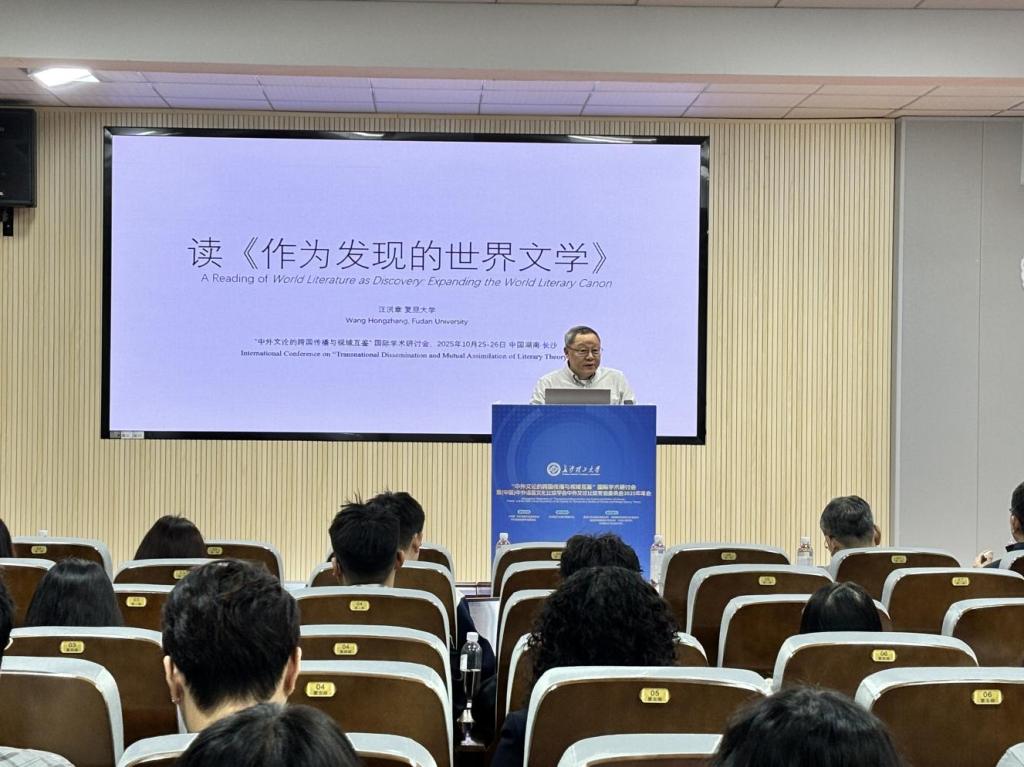 10月26日上午8点35分,香港六宝合典资料大全外国语学院特邀复旦大学教授汪洪章于金盆岭校区3教321报告厅为我院师生开展专题讲座,聚焦张隆溪新著《作为发现的世界文学:扩展世界文学的经典》,解析如何以全球视野破除比较文学与世界文学研究中的欧洲中心主义迷思。