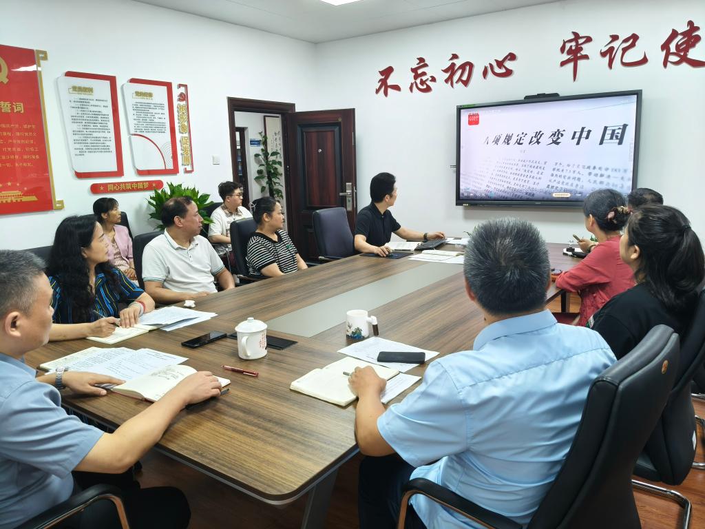 在 “一月一课一片一实践” 环节,全体教职工集中观看《八项规定改变中国》第一集 “党在新时代的徙木立信之举” 与第二集 “以小切口撬动全面从严治党大变局”。纪录片以生动的案例、详实的史料,回溯了中央八项规定出台以来,党以 “小切口” 推动 “大变局” 的壮阔历程,深刻展现了新时代全面从严治党的坚定决心与显著成效。